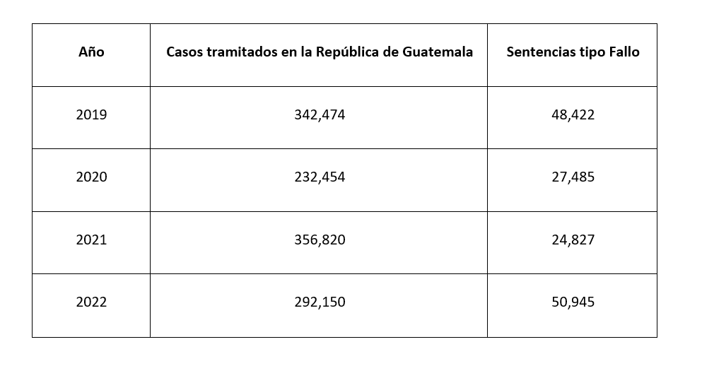 A continuación, les comparto datos estadísticos del Organismo Judicial, que revelan la alta morosidad judicial:[1]